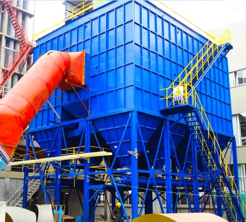 Cyclone Dust Collector (Pre-treatment): Suitable for ambient temperature applications (<80° C) such as cold feeders and belt conveyors, and large-particle dust (>5μm). Equipment diameter is designed based on airflow volume; for example, a 10,000m³/h airflow requires a 1.2-1.5m diameter unit with an inlet velocity of 18-22m/s. Centrifugal force achieves 85%-90% removal efficiency for large particles. Taking a cold material machine as an example, dust emission concentrations can reach 200-300 mg/m³ without a cyclone dust collector. Installation reduces this to 30-50 mg/m³, alleviating the load on subsequent fine treatment processes.